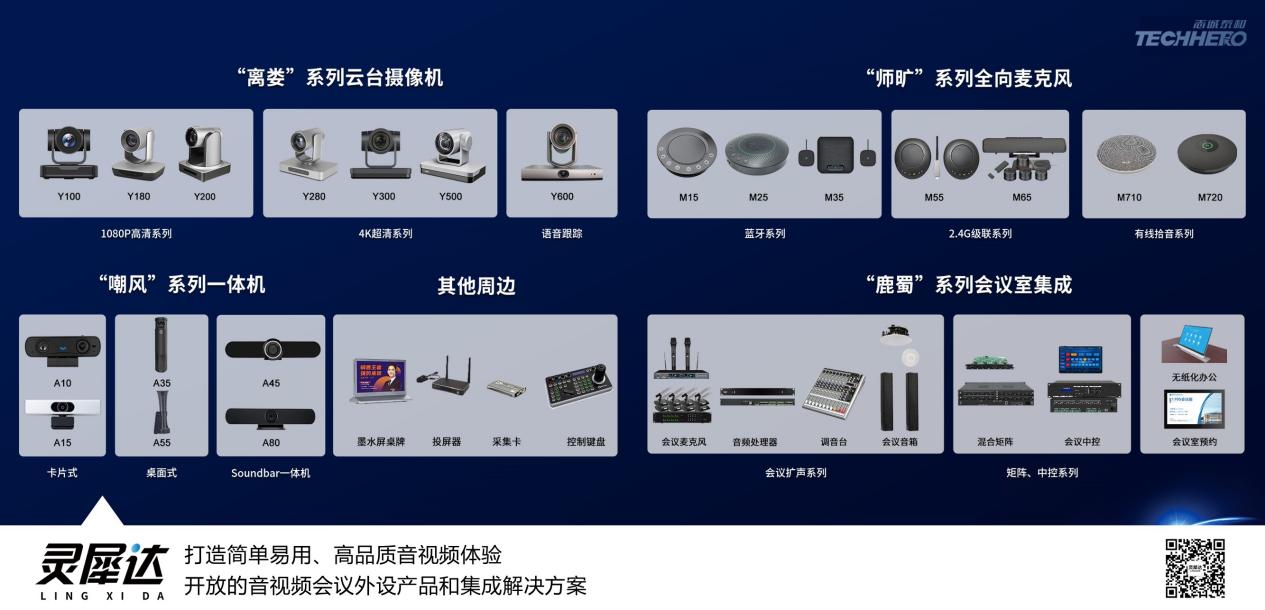 以上是一张最新的灵犀达产品矩阵图,在这个春节前后,灵犀达产品部做了很多工作来完善灵犀达的产品线,离娄Y系列和师旷M系列以及鹿蜀J系列三个产品线将会在今年发布很多的新的型号和新的功能。在离娄Y系列的云台摄像机方面,除了之前推出的型号Y100、Y200、Y300、Y500、Y600等产品,新增了Y180和Y280等新的型号和图像跟踪功能,接下来还会迎来Y300和Y500的升级换代以及增加无线云台摄像机等产品,并且后续会在大部分型号的主力云台摄像机上增加重力感应和图像跟踪功能,进一步提升产品的竞争力和性价比。师旷M系列的全向麦也增加了M710和M720两款有线拾音器产品,其中M720支持多台的级联,后续还要发布一个新的型号M850,可以为客户实现远程高品质拾音和本地无感扩音,之后M35也会发布一个新的无线扩展麦型号产品。鹿蜀会议室集成J系列近期发布了调音台、矩阵、中控、无纸化、会议室预约等全新产品。接下来还会对原有的手持麦、鹅颈麦、方管会议麦等产品进行更新换代,进一步提升产品品质和性价比,灵犀达今年还会新增一条会议室周边产品线,包括墨水屏桌牌、投屏器、采集卡以及控制键盘等产品,全面满足会议场景的音视频集成需求。在公司各位老总的支持下,今年很多部门都下达了灵犀达的产品销售任务指标,灵犀达产品部会全力配合大家打造好产品线和做好产品的支持工作,争取跟大家一体努力完成公司下达的任务指标。